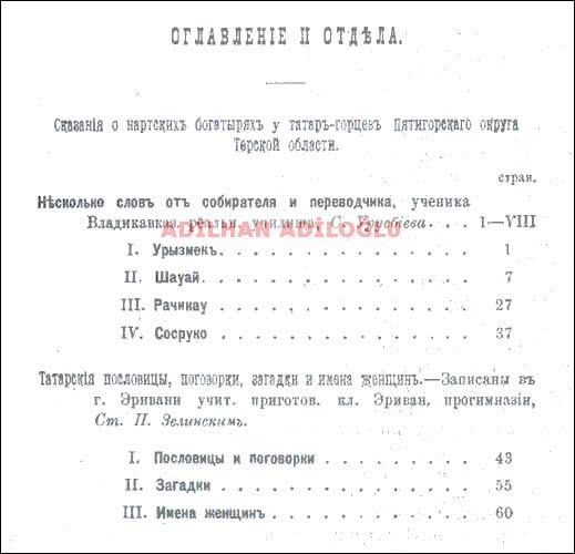 Terek eyaletinin Beştav [İssi-Suv] bölgesinde ve buraya yakın dağlık yerlerde Tatar ve Moğol kökenli insanların kurmuş olduğu büyük köyler bulunur. Burada yaşayanlar Tatarca ' 'ya benzer bir dili konuşurlar. Ovalık düz arazilerde ise Kabardeyler yaşamaktadır. Bu iki kavimin konuştukları diller birbirinden tamamen farklıdır. Ben, Kabardeylerin arasında da uzun yıllar bulundum. Dağlı Tatarların ve Kabardeylerin arasında gezerken ağızdan ağıza, kuşaktan kuşağa aktarılan sözlü folklor ürünlerini derleyerek kaydettim.