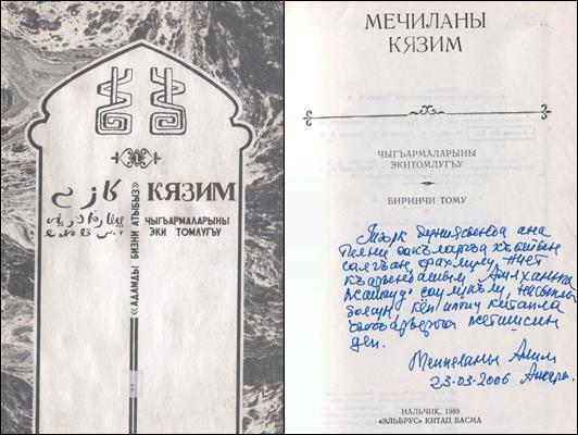 Bunun dışında yazarın daha birçok ilmî çalışmaları vardır: “Omar Etezov” [1967], “Malkar Proza” [Malkar Nesri, 1974], “Kâzim Meçiyev” [1979], “Oçerki İstorii Balkarskoy Literaturı” [Malkar Edebiyatı Tarihi, 1981], “Kaysın Kuliyev” [1995]. Yine edebiyat üzerine orta ve lise derecesindeki okullar için hazırlamış olduğu kitapların sayısı bir hayli fazladır: “Malkar Adabiyat” [Malkar Edebiyatı, 1993]…