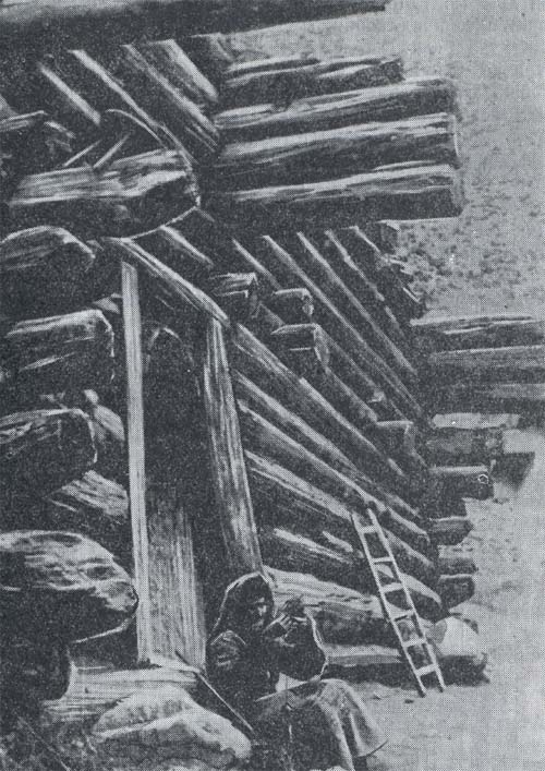 Bundan başka, Bulgar Türkleri, iklim şartlarının icabı olarak, kalın ağaç kütüklerini üst üste koymak suretiyle evler inşa ederlerdi. Bulgar Türklerinin köy veya şehirleri [s. 26 ] ekseriyetle orman ve nehir kenarında idi (Kurat 92: 185). Bulgar Türklerinin bu tip evleri de Karaçaylıların kültüründe korunmuştur. Karaçaylıların en eski ev tipi “töññertge” adı verilen, kalın ağaç kütüklerini üst üste koymak suretiyle inşa edilen evlerdir. Bu tip evler Kuzey Kafkasya’da yalnız Karaçaylılarda vardır.